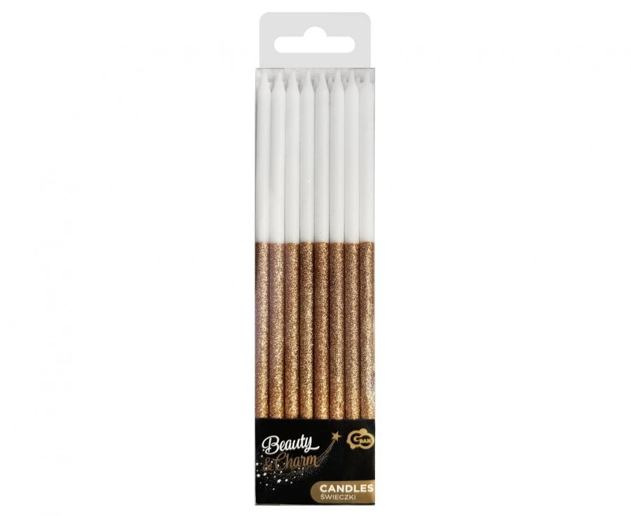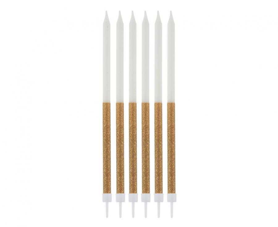Afmæliskerti - Með stjökum 16 stk 14,5x0,6cm - Glitter Gold