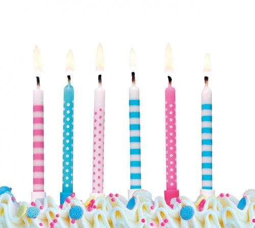 Kerti með festingum - Blá og bleik með mynstri - 6 stk