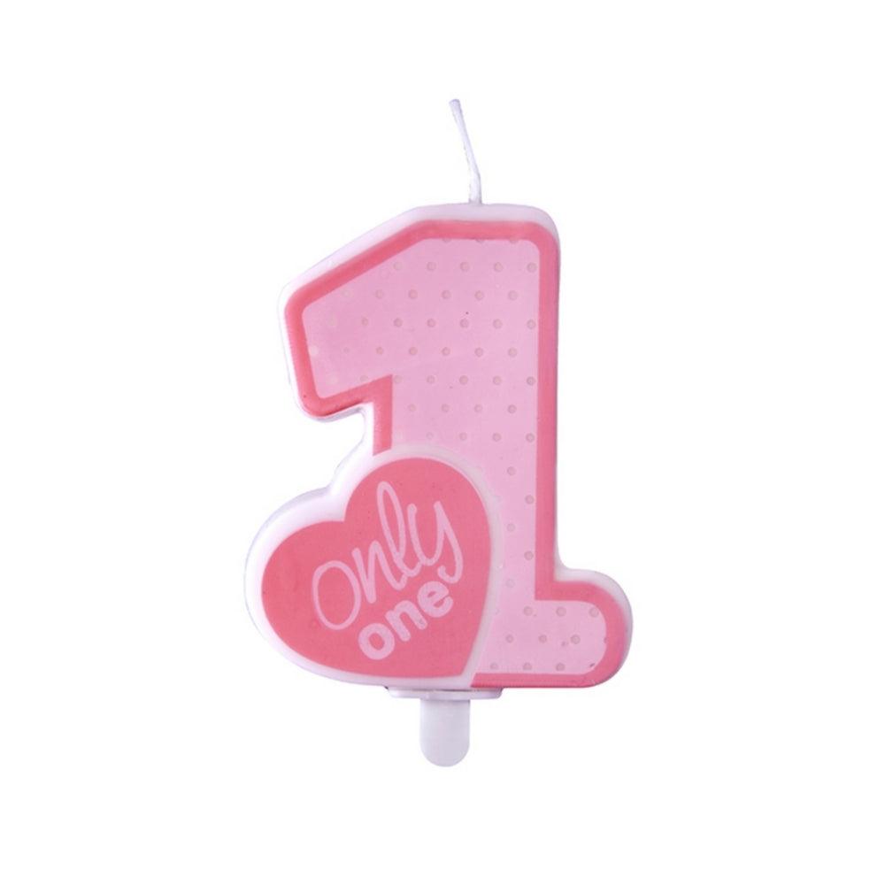 Númerakerti - 1 árs - Only One - 8 cm - Bleikt