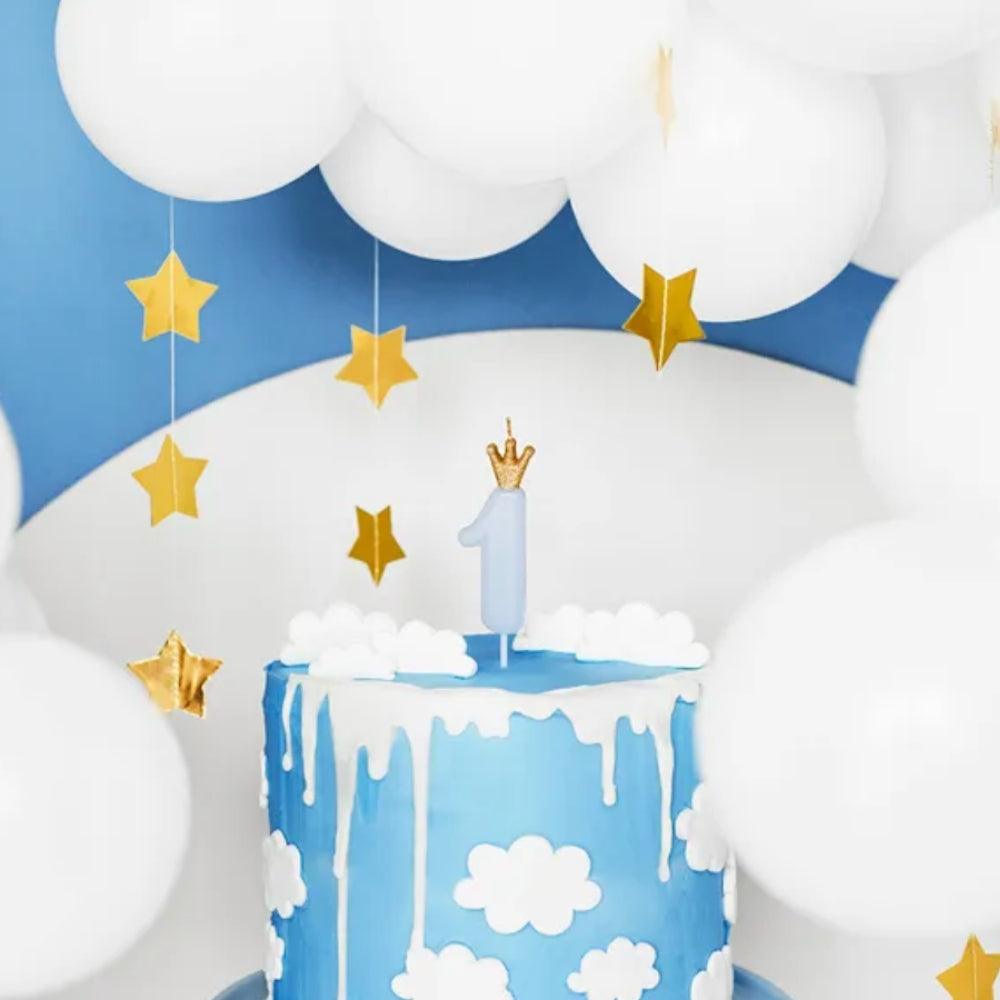 Númerakerti - 1 árs - Með kórónu - 9,5 cm - Ljósblátt