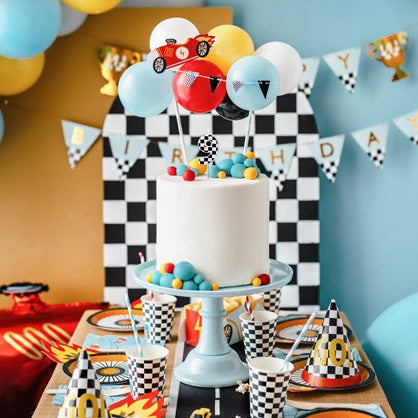 Blöðruskreyting - Kökutoppur - 8 blöðrur - Kappakstursbíll