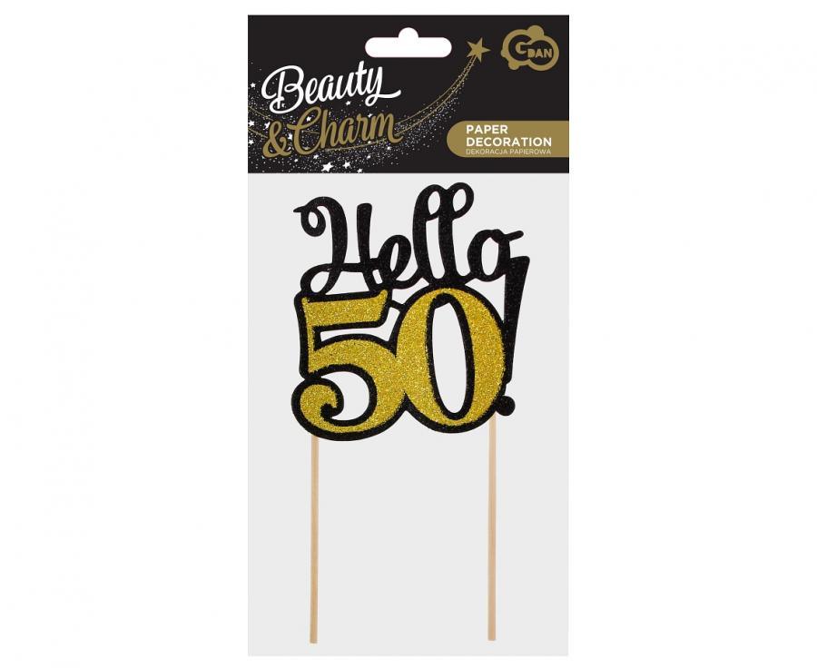 Kökuskilti - Hello 50 - Gyllt og Svart - 10x19cm