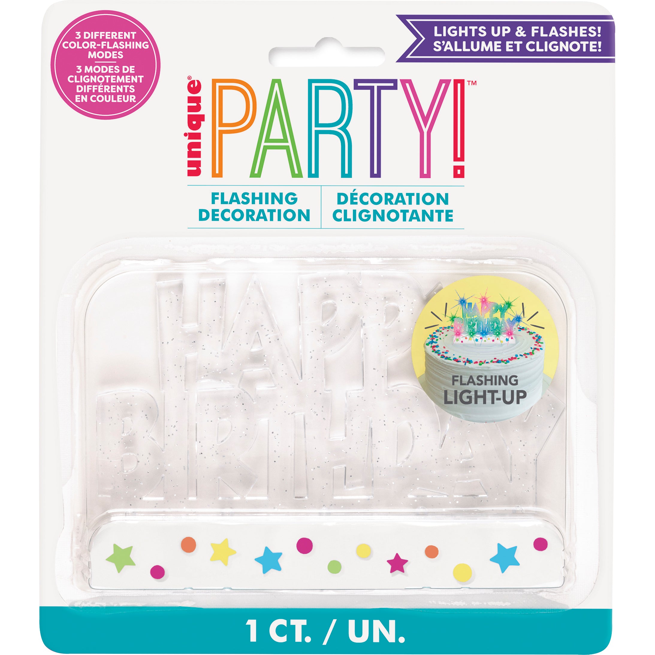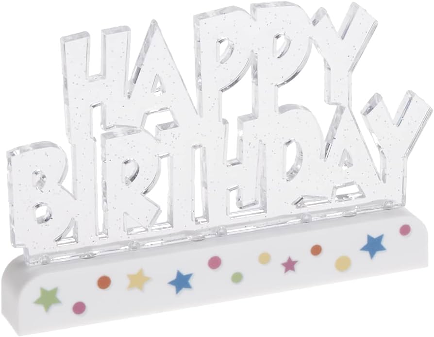 Kökuskilti með ljósi - Happy Birthday - 12 x 8 cm
