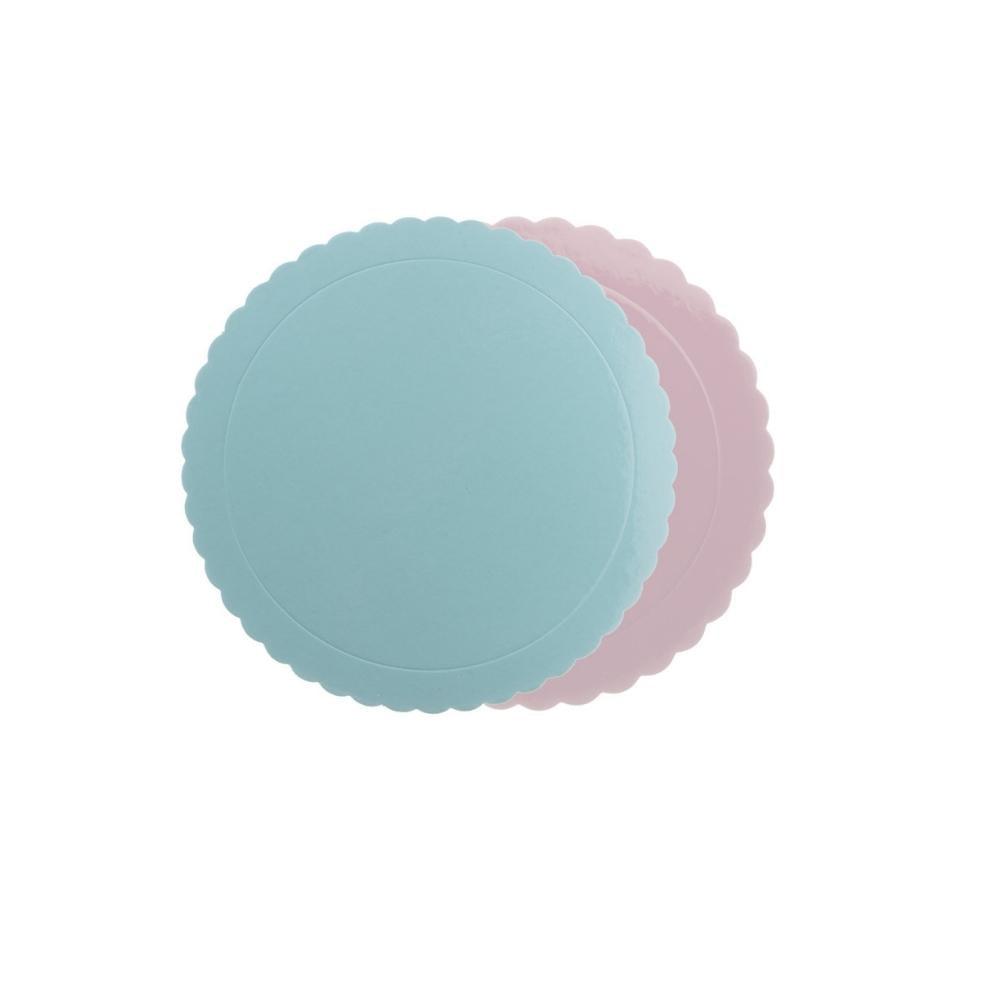 Kökuspjald - Kringlótt - Scalloped - 3 mm - Bleikt / Blátt - 30 cm