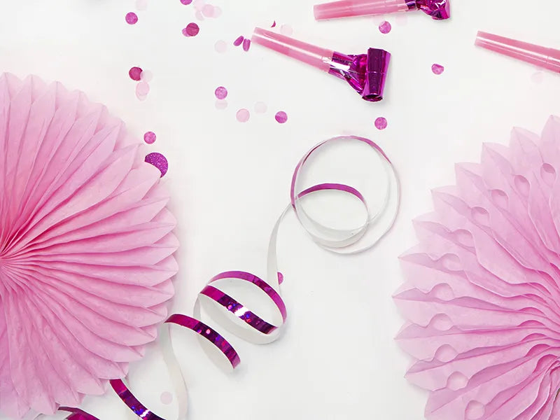 Krullubönd úr glanspappír - Holographic - 18 rúllur - Bleikar