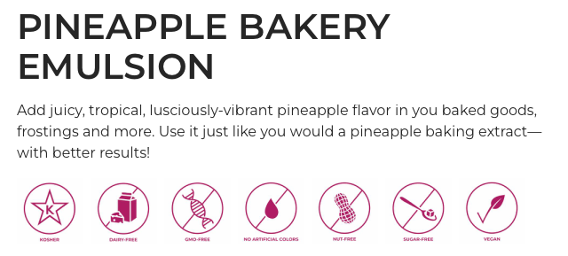 Add juicy, tropical, lusciously-vibrant pineapple flavor in you baked goods, frostings and more. Use it just like you would a pineapple baking extract—with better results!