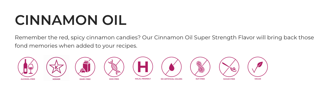 Bragðefnið er kjörið til þess að bragðbæta brjóstsykur, isomalt, súkkulaði, sykurmassa, kökubotna, krem, kökufyllingar, deig, konfektfyllingar og fleira.