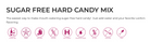 Leiðbeiningar: Setjið blönduna í pott ásamt 1/2 bolla af vatni (120 ml). Hitið á meðalháum hita þar til blandan leysist upp. Látið blönduna sjóða og fjarlægið af hitanum þegar hún nær 160°C. Leyfið blöndunni að kólna í um 10 mínútur í pottinum. Bætið einni flösku af LorAnn bragðefni út í blönduna. Bætið matarlitum við ef þið viljið. Spreyið örlítilli matarolíu á silíkonmottu eða í hitaþolin mót. Hellið blöndunni á mottuna eða í mótin. Kælið alveg áður en þið takið sykurinn af mottunni eða úr mótunum. Ekki setja brjóstsykurinn í ísskáp til þess að kæla hann.