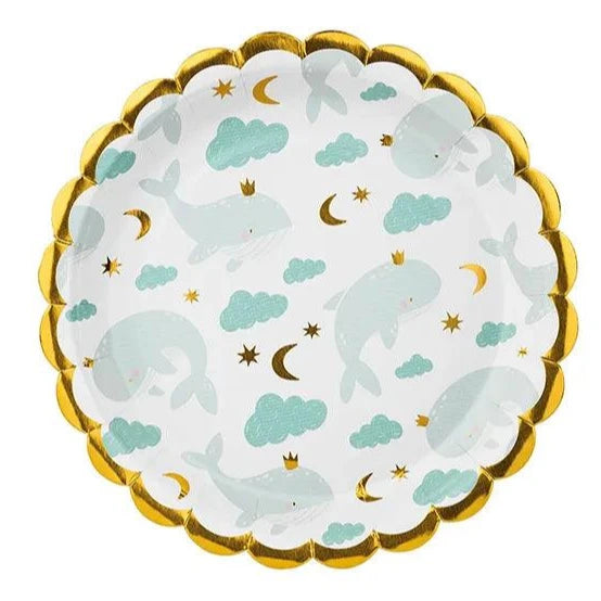 Pappadiskar - Hvalir með gyllingu - 18cm - 6 stk