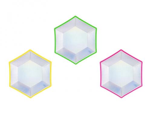 Pappadiskar - Sexhyrndir - Holographic og neon - 20 cm - 6 stk