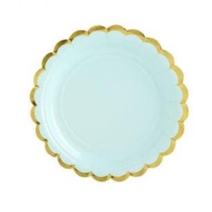 Pappadiskar - Með gylltri rönd - 18 cm - 6 stk - Myntugrænir