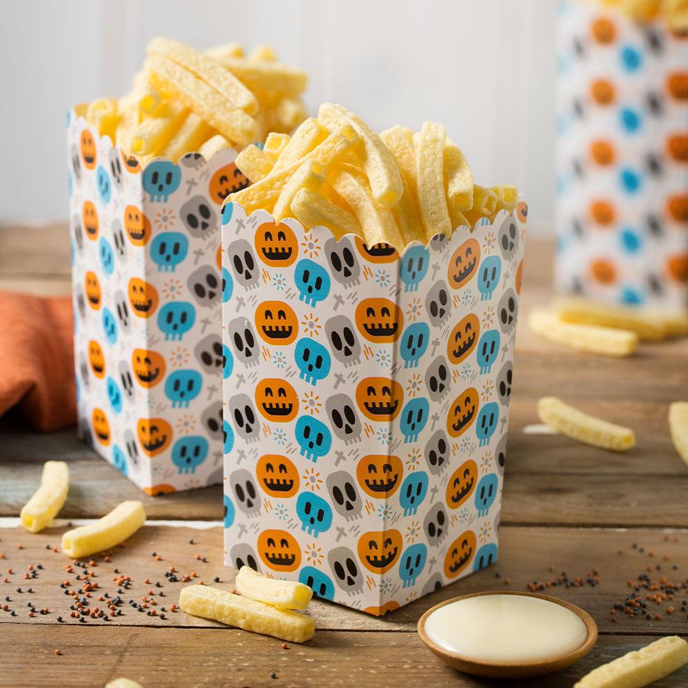 Resistant cardboard box, lined inside with anti-grease paper, suitable for food contact. Perfect for parties and events: they are excellent decorative elements for the party table, ideal for serving popcorn, chips or various snacks, both sweet and savory.
