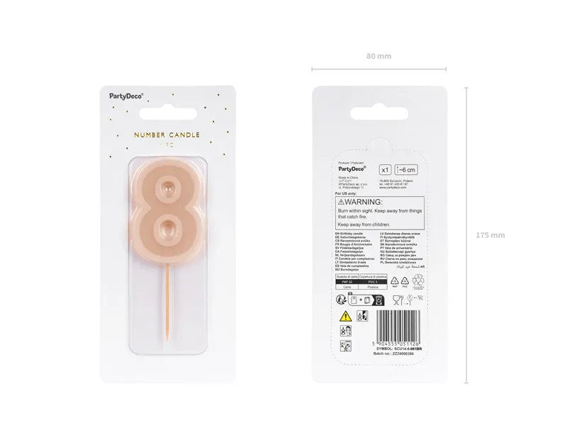 Númerakerti - 8 - 6 cm - Dusty rose