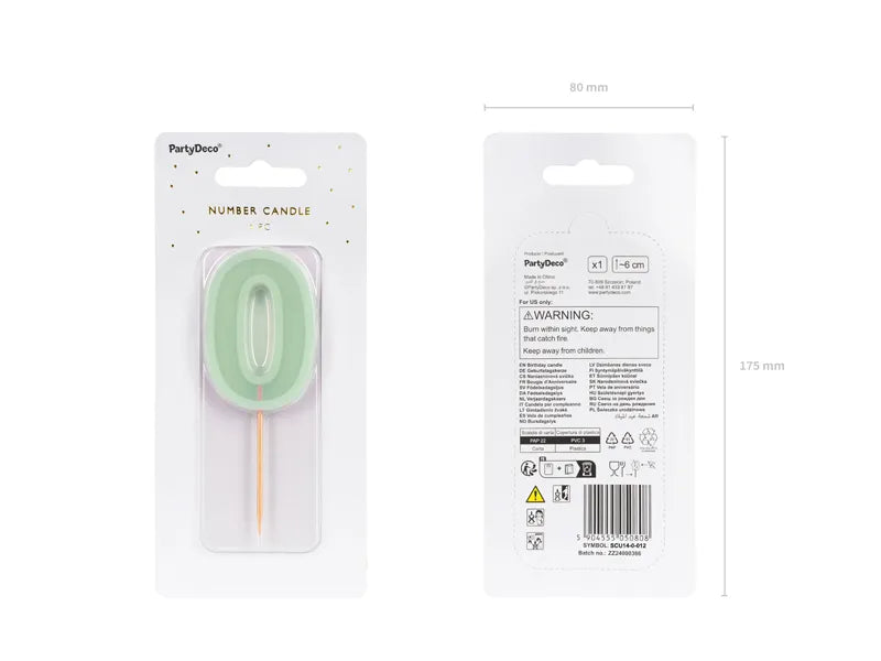 Númerakerti - 0 - 6 cm - Ljósgræn