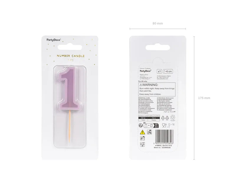Númerakerti - 1 - 6 cm - Ljósfjólublá