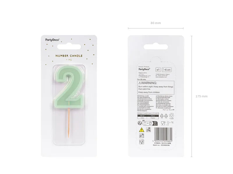 Númerakerti - 2 - 6 cm - Ljósgræn