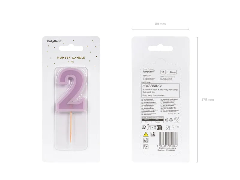 Númerakerti - 2 - 6 cm - Ljósfjólublá