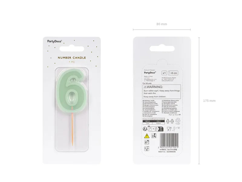 Númerakerti - 6 - 6 cm - Ljósgræn