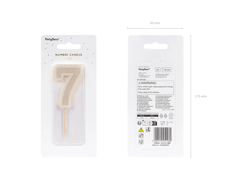 Númerakerti - 7 - 6 cm - Ljósgrá/beige