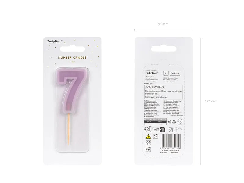 Númerakerti - 7 - 6 cm - Ljósfjólublá