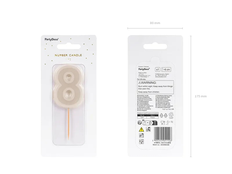Númerakerti - 8 - 6 cm - Ljósgrá/beige