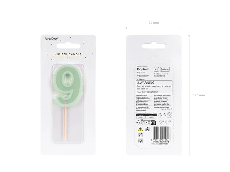 Númerakerti - 9 - 6 cm - Ljósgræn