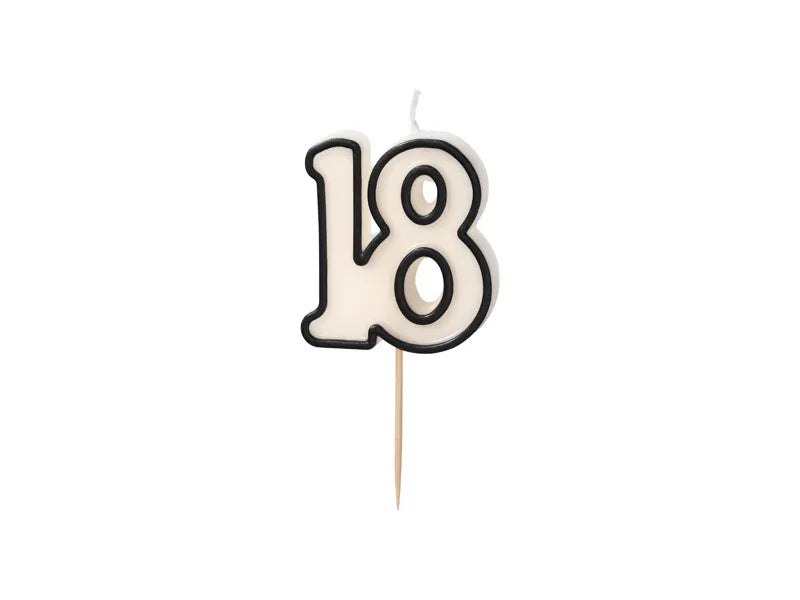 Númerakerti - 18 - 5,5 cm - Hvít og svört