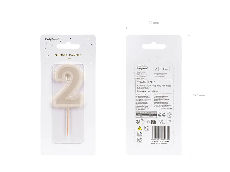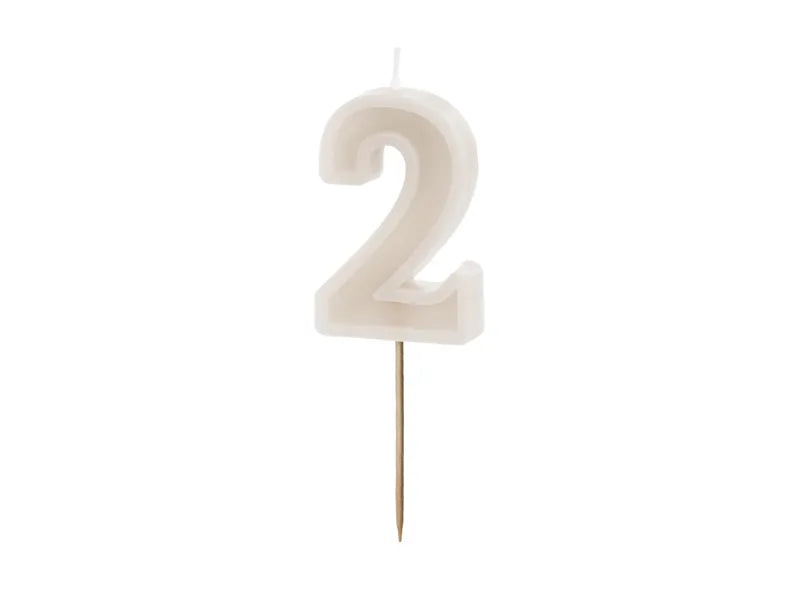 Númerakerti - 2 - 6 cm - Ljósgrá/beige