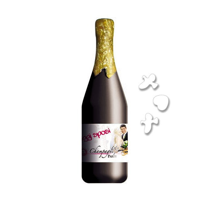Partýbomba - Kampavísflaska með Hvítum Hjörtum og Dúfum - 30 cm