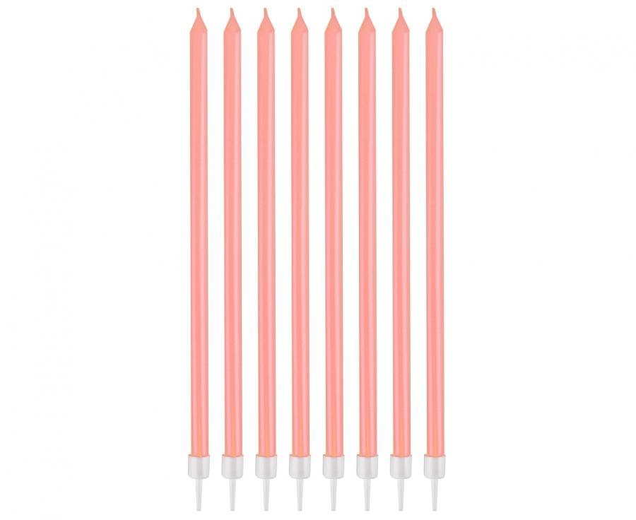 Afmæliskerti - Með Stjökum 8stk - 0,44x15,5cm - Perlu Ljós Bleik