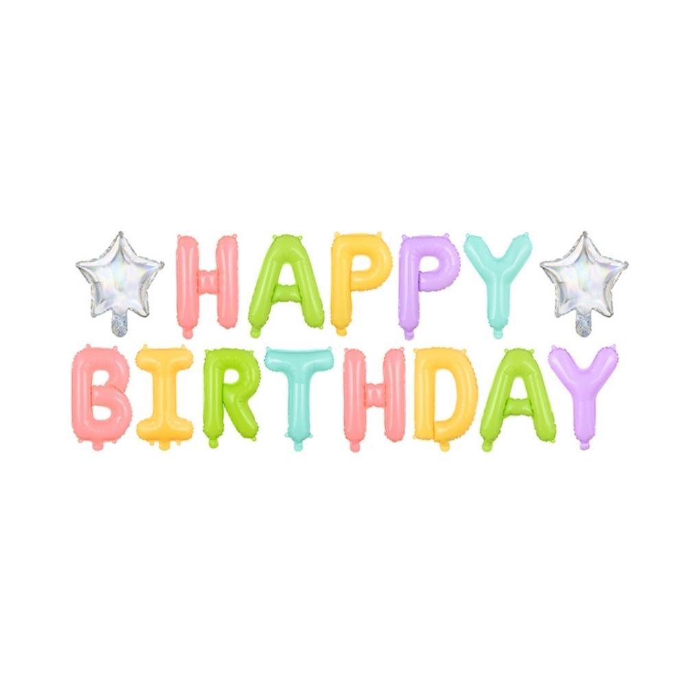 Álblöðrur - Bókstafir - Sett - HAPPY BIRTHDAY - 35x395 cm - Pastel