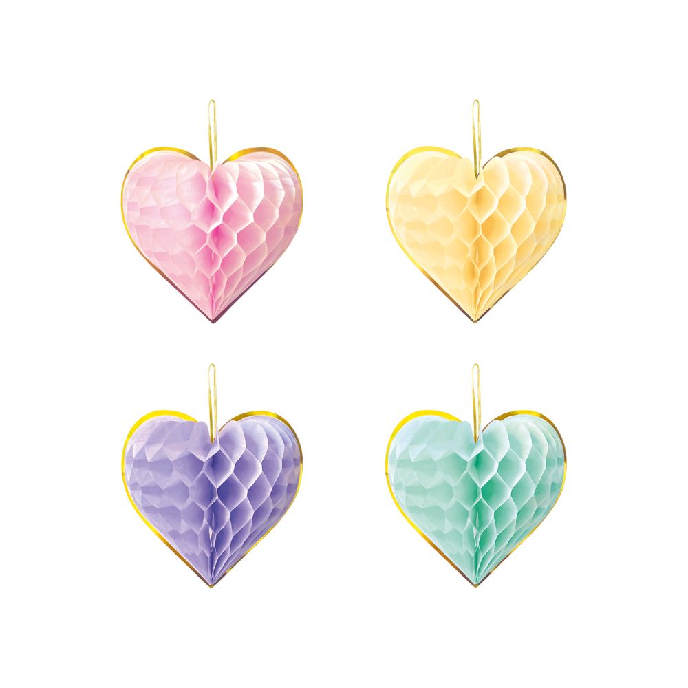 Hunangsbú - Hjörtu - 15,5 cm - 4 stk - Pastel