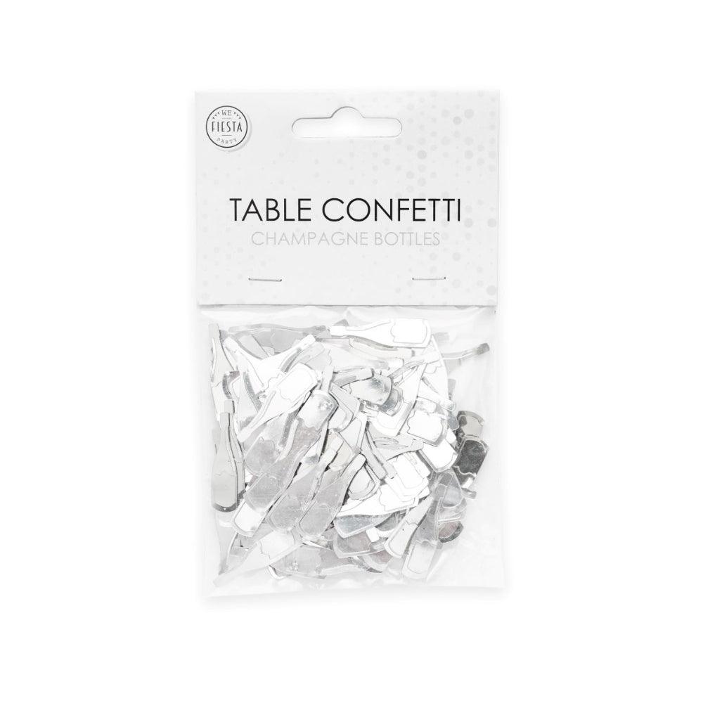 Borðskraut - Confettiflögur - 14 gr - Kampavínsflöskur - Silfur
