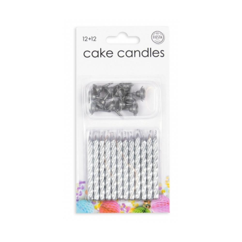 Kerti - Með stjökum - 6 cm - Silfur - 24 stk
