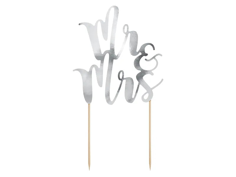 Kökuskilti - Mr & Mrs - 25,5 cm - Silfur