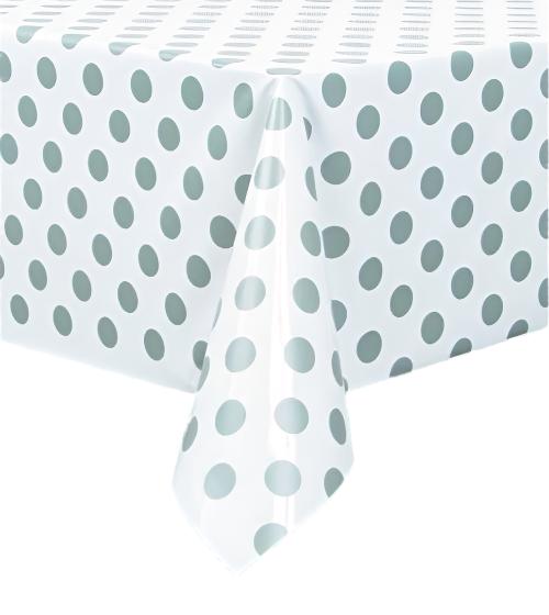 Plastdúkur - Með hvítum doppum - 135 x 275 cm - Silfur