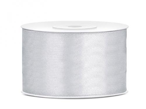 Satínborði - Tvöfaldur - 38 mm - 25 m - Silfur