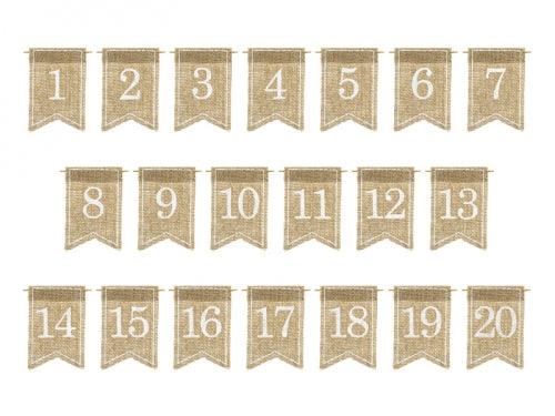 Borðnúmer - Strigaefni - Hvítir Stafir - 1-20 - 20 stk