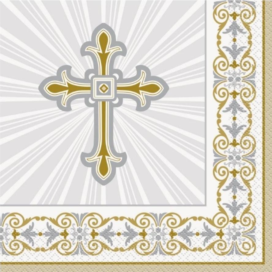 Servíettur - Geislandi Kross - 33 x 33 cm - 16 stk - Gull og Silfur