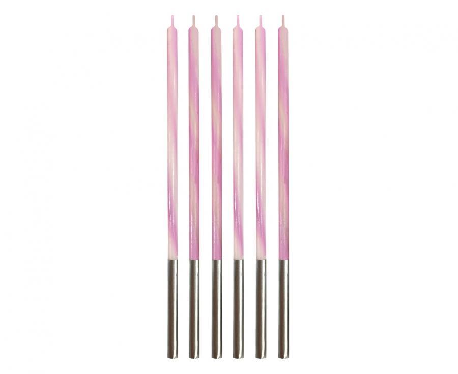 Afmæliskerti - 6stk - 0,45x0,45x15cm - Fjólu-Bleik og Silfur