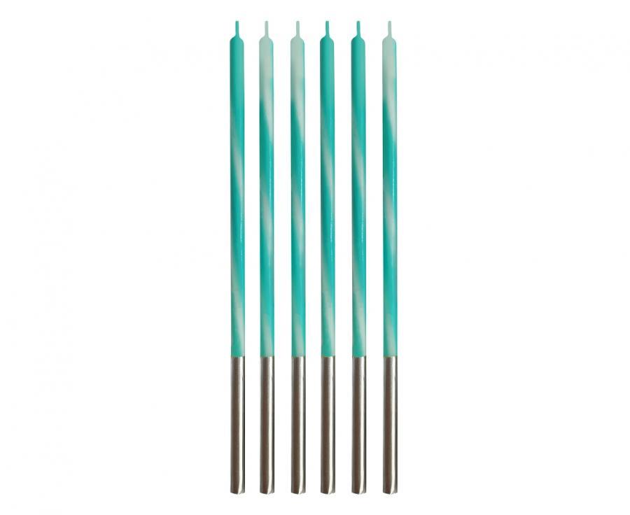 Afmæliskerti - 6stk - 0,45x0,45x15cm - Turkis og Silfur