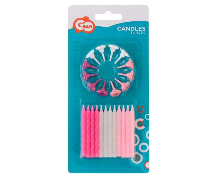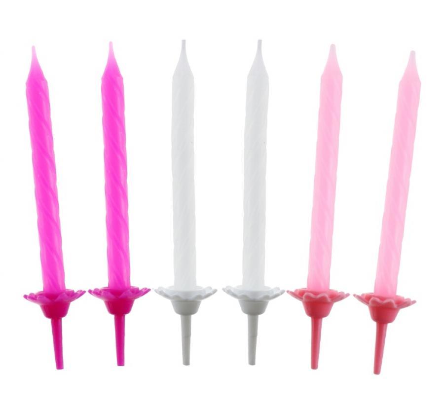 Afmæliskerti - Með Stjökum - 6cm 24 Kerti og 12 Stjakar - Bleik