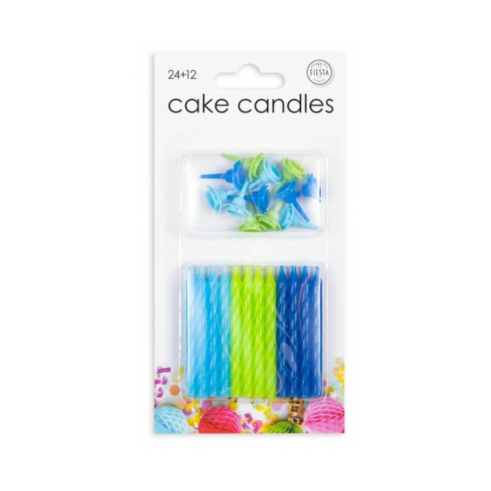 Kerti - Með stjökum - 6 cm - Blá og græn - 24 stk