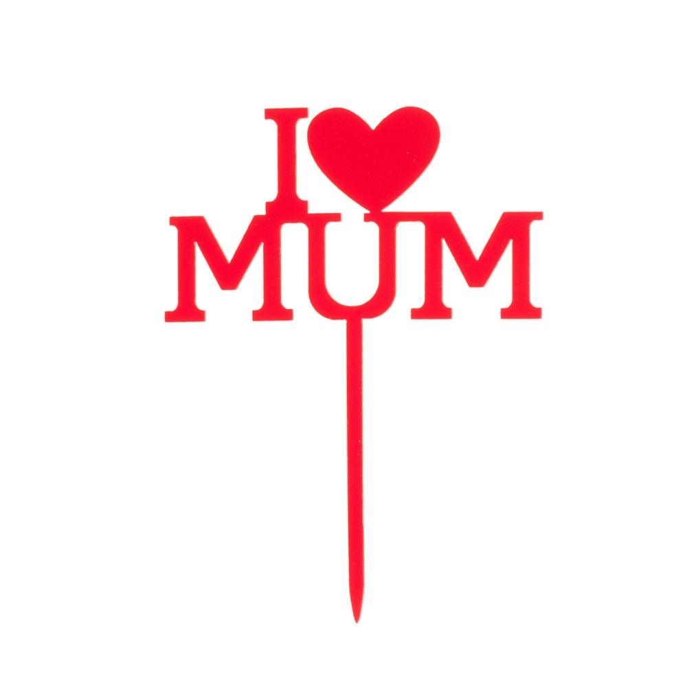 Kökuskilti - I ♥ Mum - Rautt - 12 x 9,9 cm
