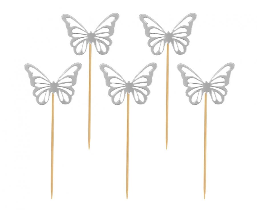 Skrautpinnar - Fiðrildi - 12 stk - Silfur