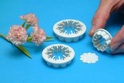 Sett með þremur nellikumótum í mismunandi stærðum. Mótin eru úr plasti.