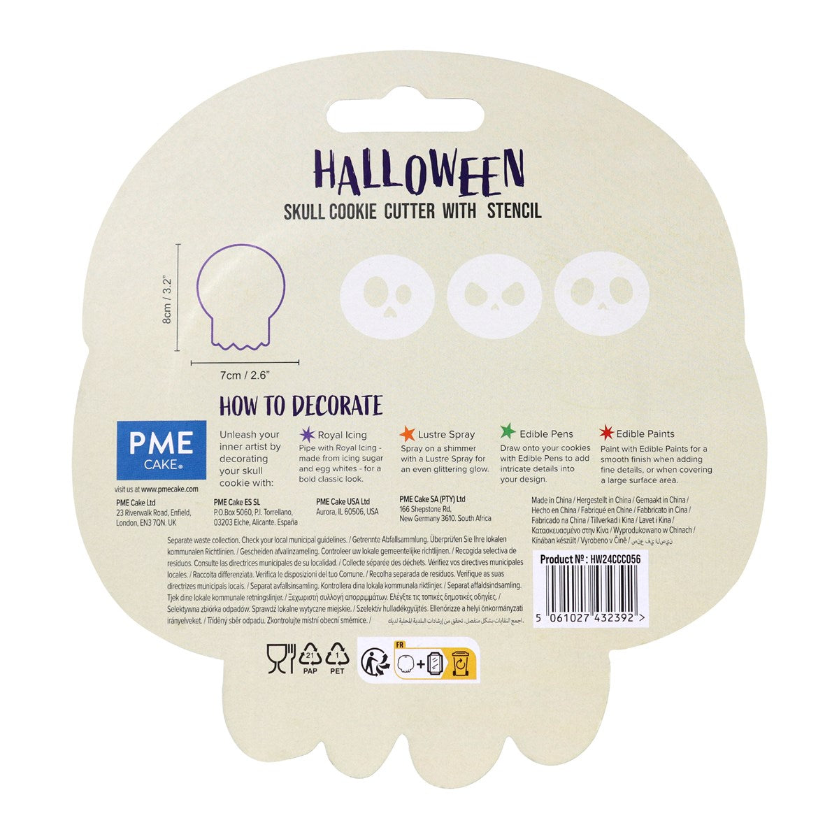 - Includes 1 x Skull-shaped metal cutter (67 x 80mm) and 3 stencil templates (74 x 66mm)