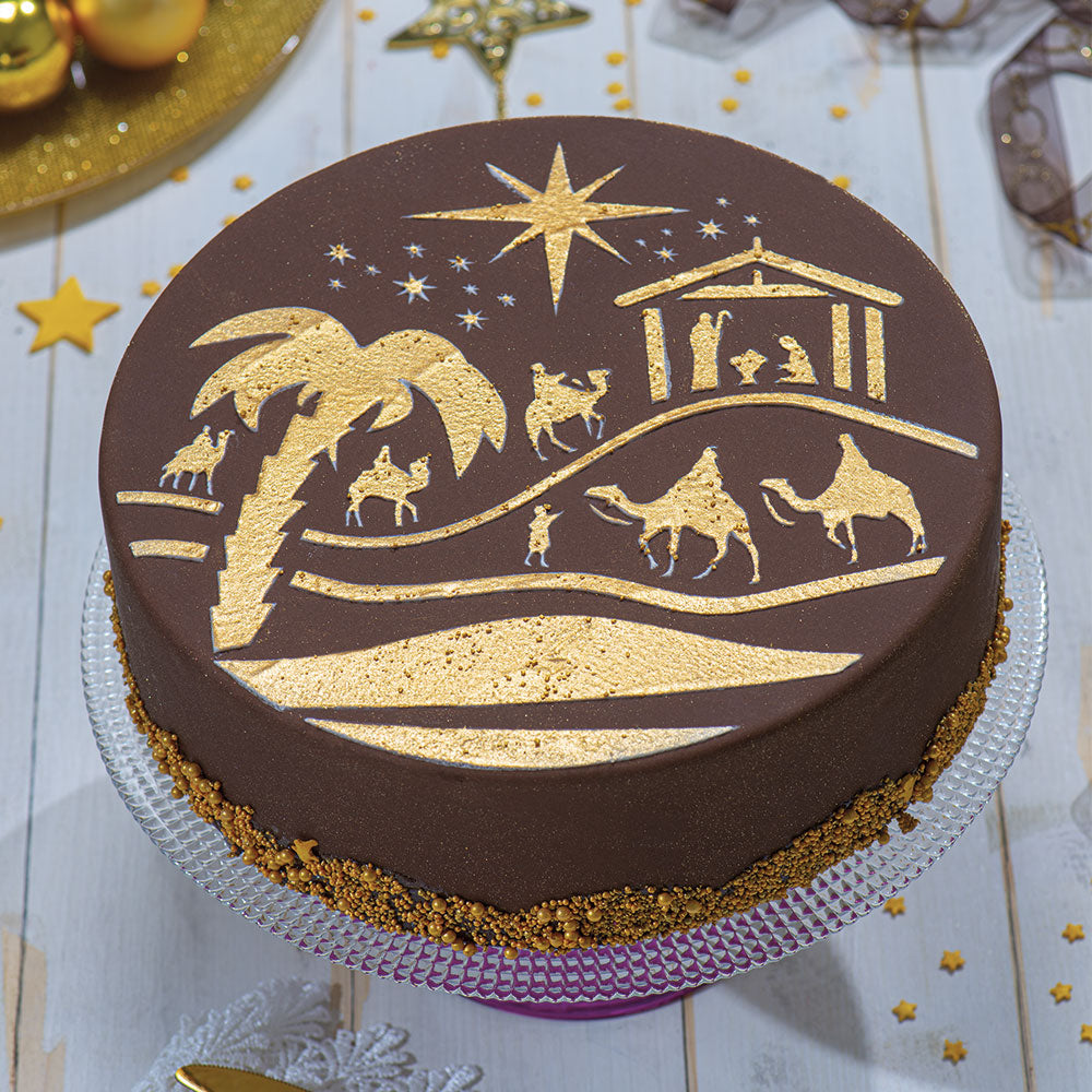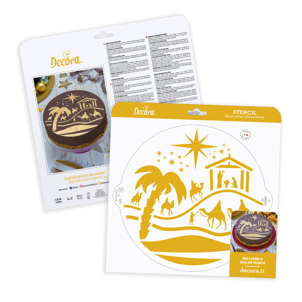Decorative stencil made of food-safe plastic; perfect for creating beautiful designs on cakes, cupcakes and biscuits using royal icing, buttercream, icing sugar, cocoa, colour sprays or airbrush.