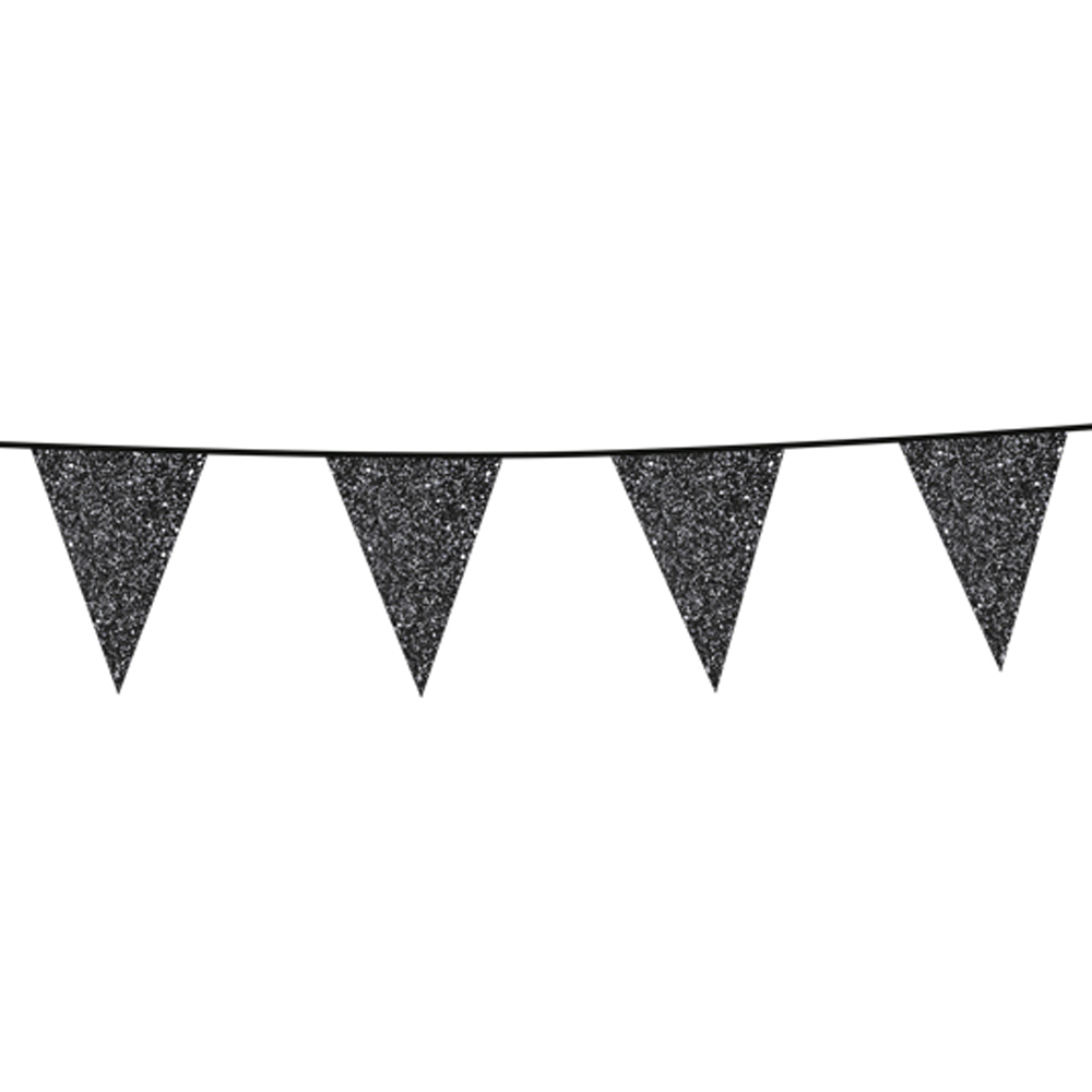 Fánalengja - Einlit - Glimmer - 16 x 20 cm - 6 m - 12 flögg - Svört