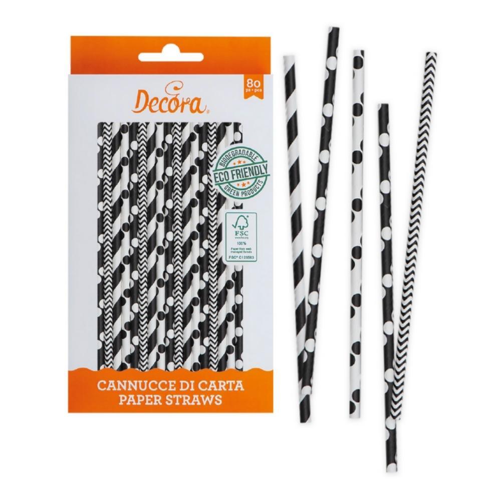 Papparör Decora - Svört og hvít - Ø 0,6 x 21 cm - 80 stk